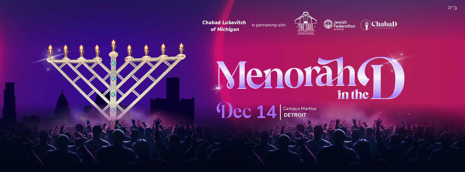 Menorah in the D 2025 will take place at Campus Martius, Detroit on Dec 14th. 4:30pm Doors Open 5:30pm Menorah Lighting Ceremony